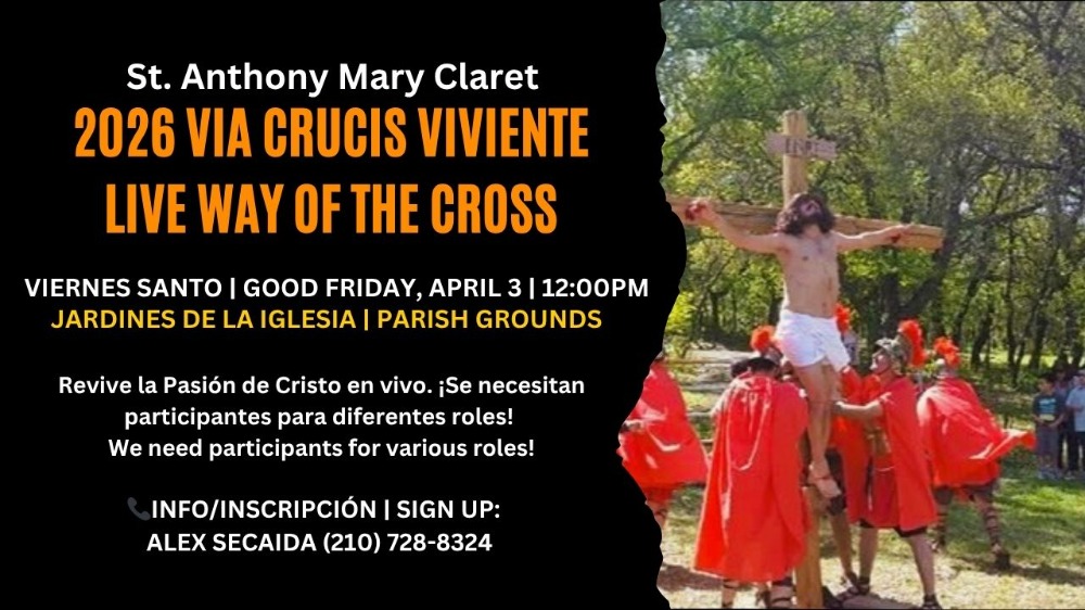 April 3, 2026(5 events) 40 Cans for LentFebruary 19, 2026 – April 4, 2026 Church Good Friday MassesApril 3, 2026 Church Scholarship application for SeniorsApril 3, 2026 8:00 am: Adoration Church 12:00 pm: Live Way of the Cross Church |